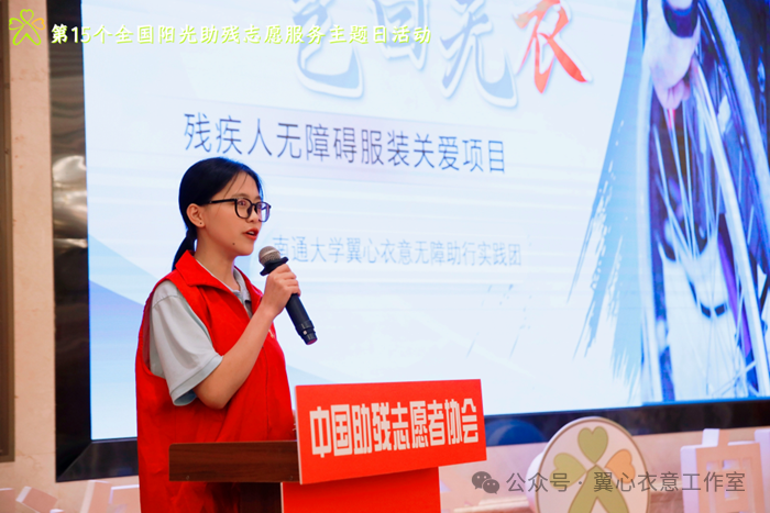 7 月,第十五个全国阳光助残志愿日暨十周年成果展上,“翼心衣翼” 团队作为唯一学生团队登台分享。从初期的需求调研到如今的标准化服务,团队用持续深耕的实践行动,生动诠释了 “阳光助残” 的青年担当,成为全国助残志愿服务中的青春典范。